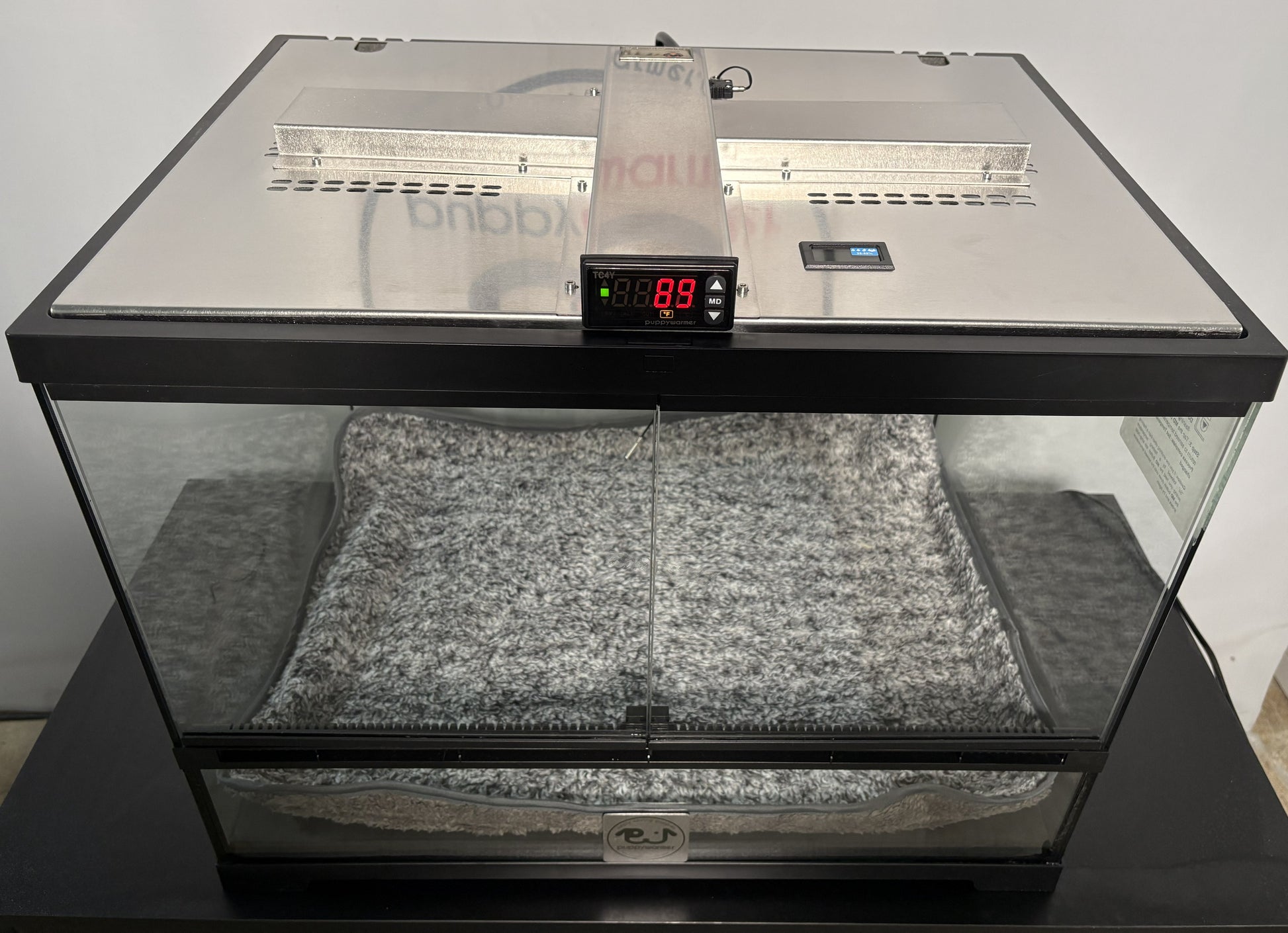 The full-visibility, non-porous glass enclosure is easy to clean and creates a thermal gradient that allows all pups in the litter to find their right spot to process colostrum well.
